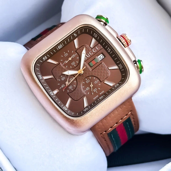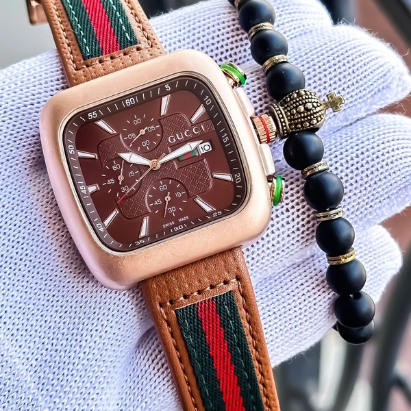 *GUCCI FULL TRENDING BROWN COLOUR WATCH WITH FREE BRASLET*